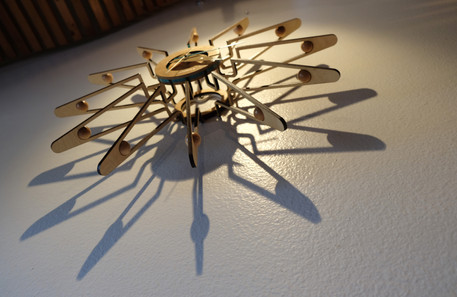 Hours indicated by pine spheres fused to each laser cut spoke.